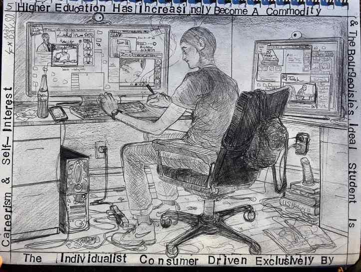 On October 24th, the May Day Student Organization hosted a public art show, Content and Form. We called for artists of all mediums to submit pieces that illustrated any of six selected quotations from the MDSO’s program. The submissions included drawings, sculpture, graphic art, and spoken word. The artworks prompted debate and discussion among MDSO members, artists, and audience members on the relationship between art and politics. This article summarizes and develops some of the most important ideas discussed at the event.